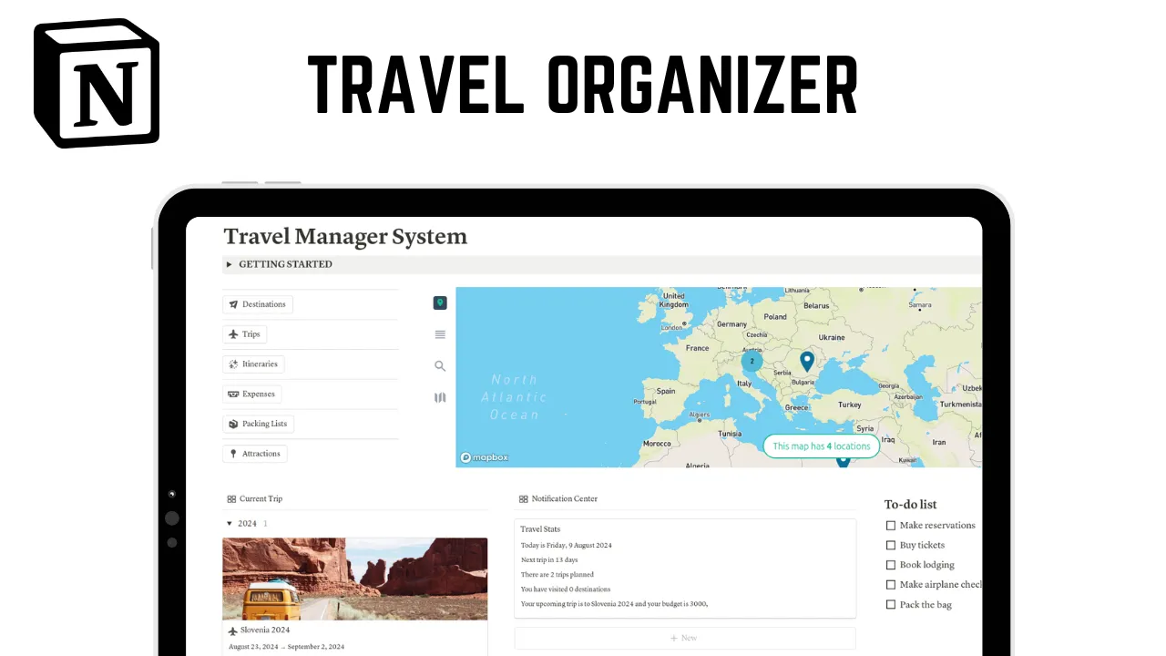 Travel Organizer: Șablonul perfect pentru planificarea călătoriilor în Notion