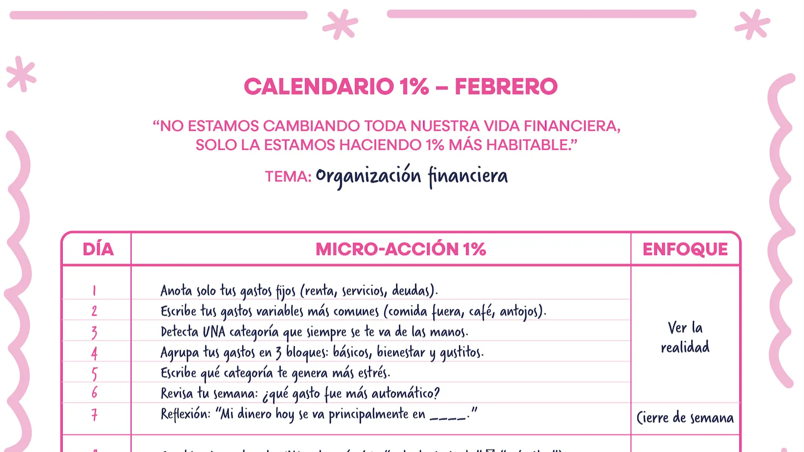 Descarga las actividades para trabajar tu 1% este mes.