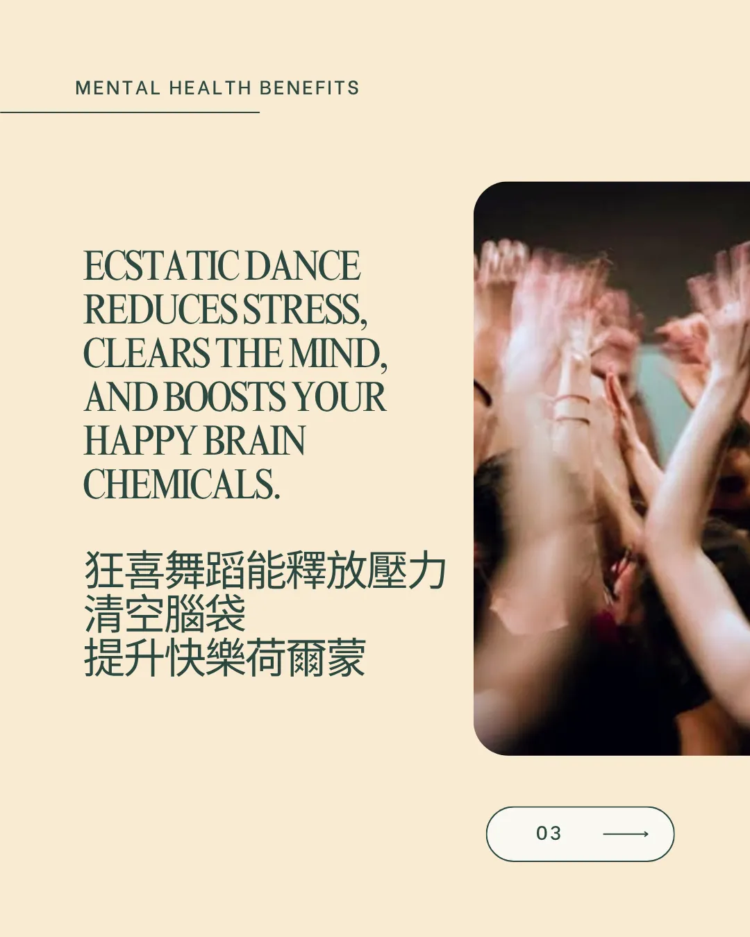 這是一場清醒舞會,重點就是提升你的快樂腦內化學物質: 巴胺(dopamine)、催產素(oxytocin)、血清素 (serotonin)、內啡肽(endorphins)