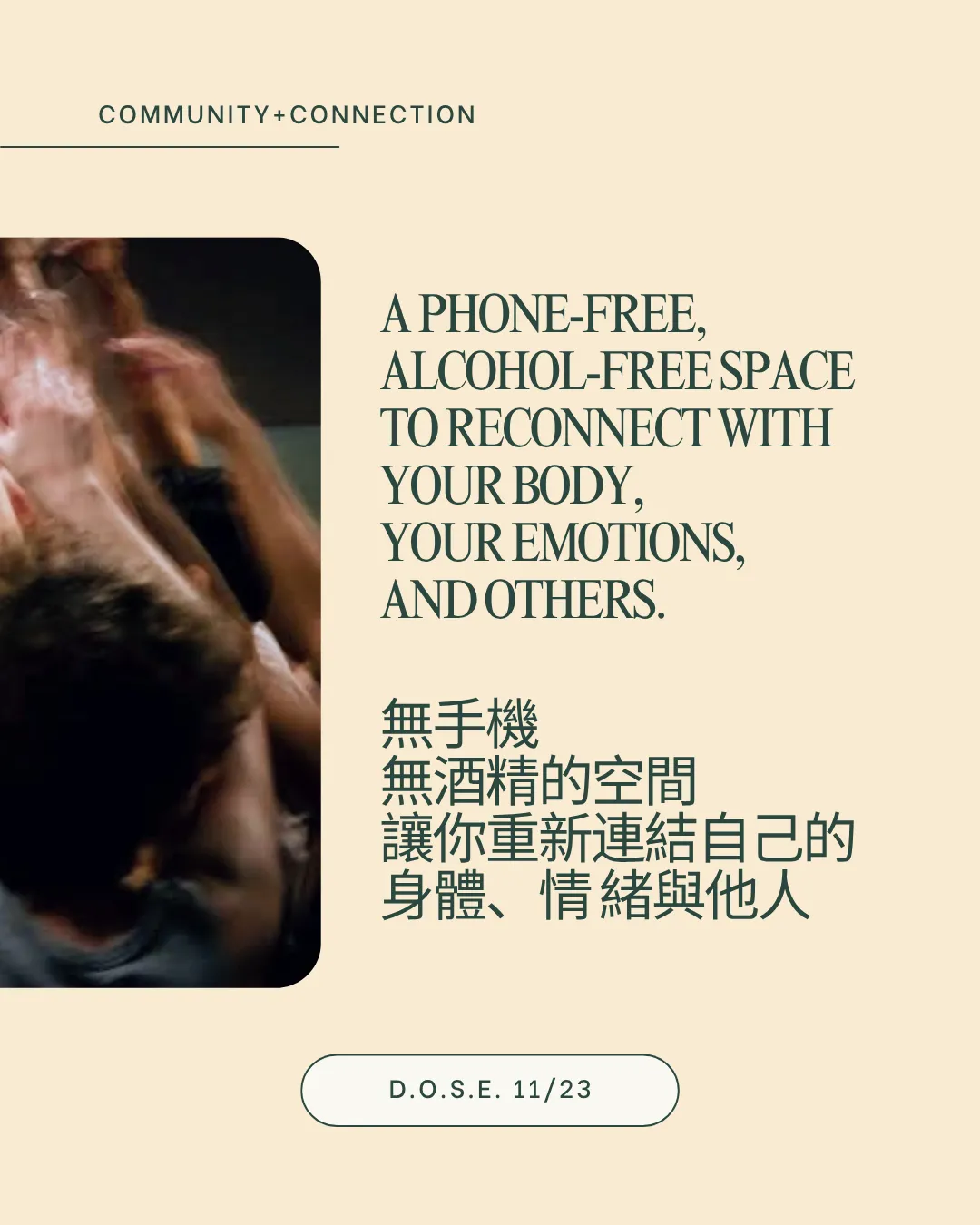 Welcome to D.O.S.E.! It's a sober dance party all about boosting your happy brain chemicals: Dopamine, Oxytocin, Serotonin, and Endorphins. We promise to have you feeling amazing!
