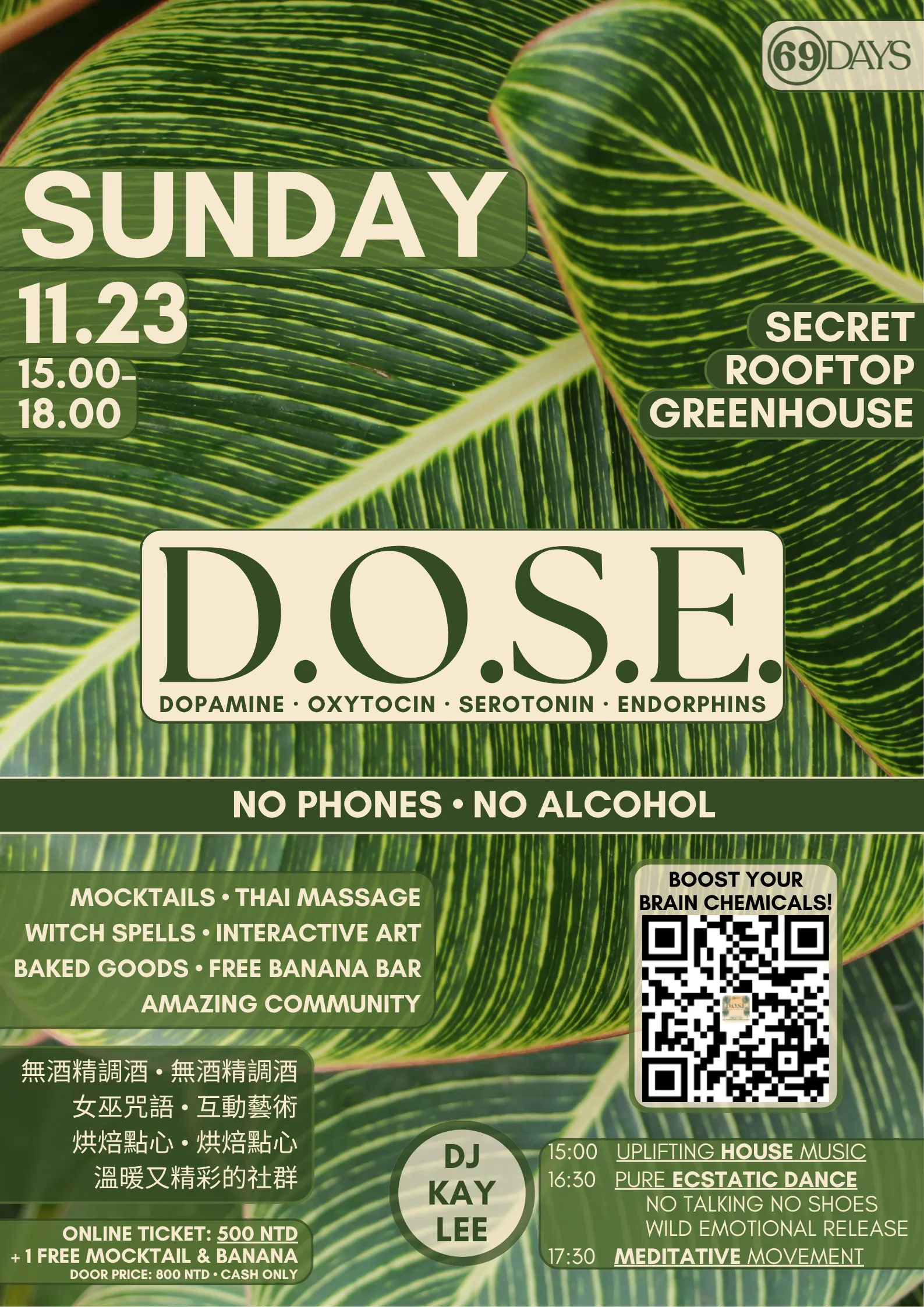 這將會是我們的第 5 場 D.O.S.E. 派對,同時也是 2025 年的最終場活動。別錯過這個能讓你的腦內化學物質大爆發、讓你感覺美妙無比的午後派對!