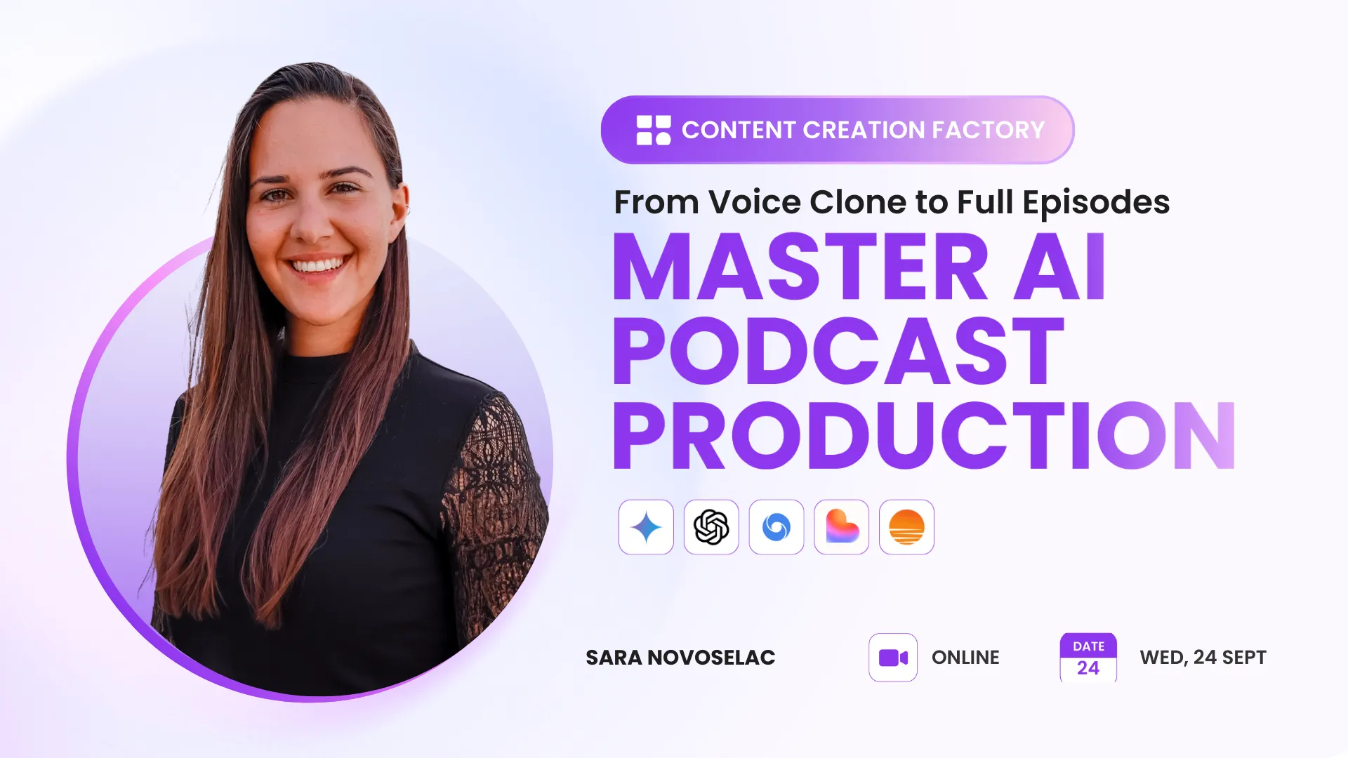 Learn how to produce high-quality podcasts faster than ever with the power of AI. In this Content Creation Factory session, we’ll guide you through the entire process — from voice cloning to creating full, polished episodes ready to publish.