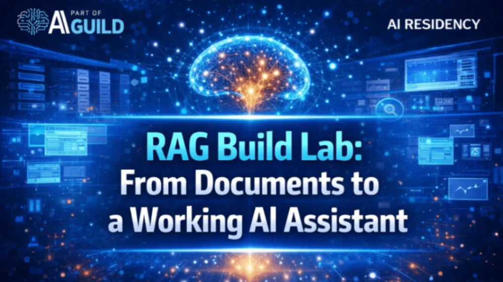 RAG Build Lab: From Documents to a Working AI Assistant is a hands-on, builder-first workshop where you’ll turn real files into a grounded, production-minded Retrieval-Augmented Generation (RAG) app—fast. This session is part of AI Guild and follows the same build discipline used in the AI Residency (scope → architecture → evaluation → iteration).