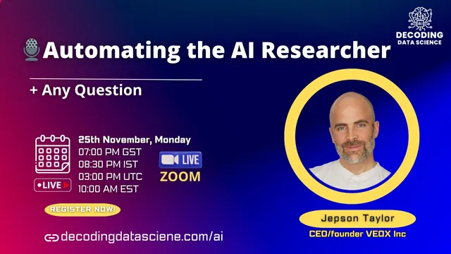 Title of Talk: Automating the AI Researcher Abstract: As artificial intelligence progresses at an unprecedented rate, one of the most transformative developments on the horizon is AI’s ability to automate its research process. In "Automating the AI Researcher," Jepson Taylor will explore how AI systems are evolving to assist human researchers and autonomously conduct end-to-end scientific discovery in AI. By designing, executing, and iterating on experiments, these advanced systems promise to accelerate innovation in unimaginable ways. Jepson will delve into the implications of this shift—from exponentially increasing research output and enabling deeper insights to reshaping the role of human researchers and setting the stage for true self-improving AI. Join us as we uncover how automated AI research could redefine the boundaries of possibility, pushing the field forward and sparking profound changes across industries.