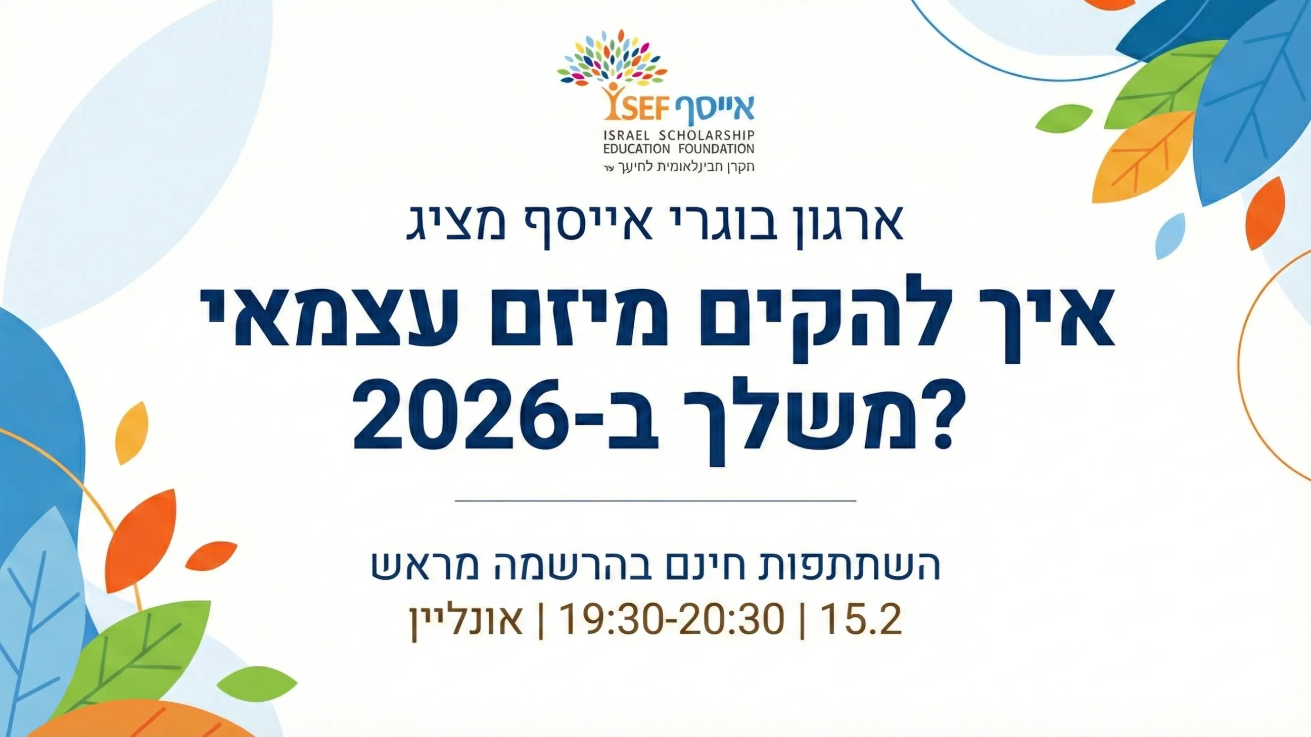 האירוע מיועד לבוגרי קרן אייסף ומלגאי קרן אייסף בלבד