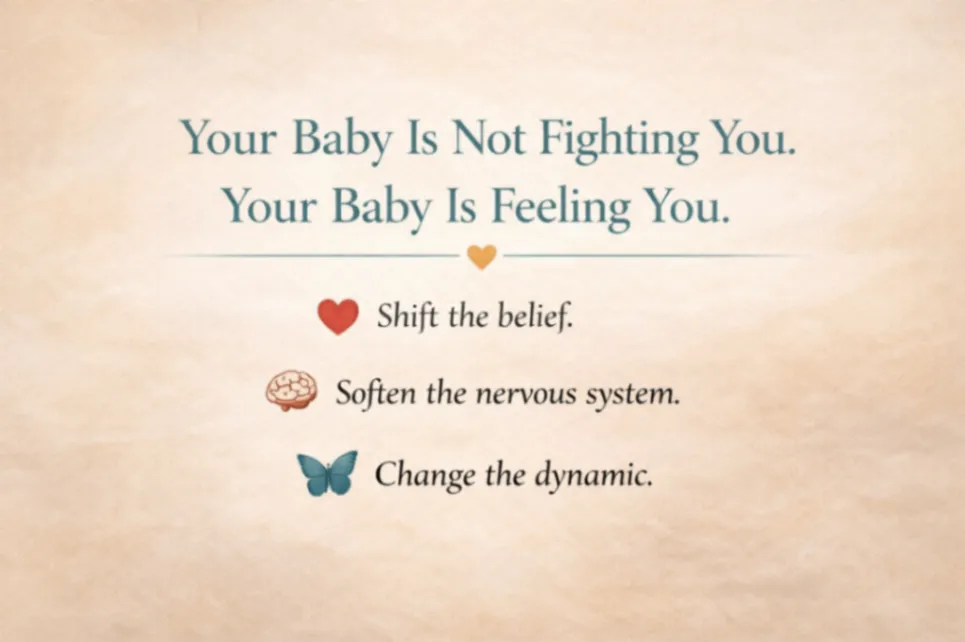 When nights feel tense instead of soft… Most people adjust routines. I work at the root. Because babies co-regulate through their mothers. If your body feels unsafe, hyper-alert, or burdened by subconscious beliefs, your baby’s nervous system responds accordingly.
