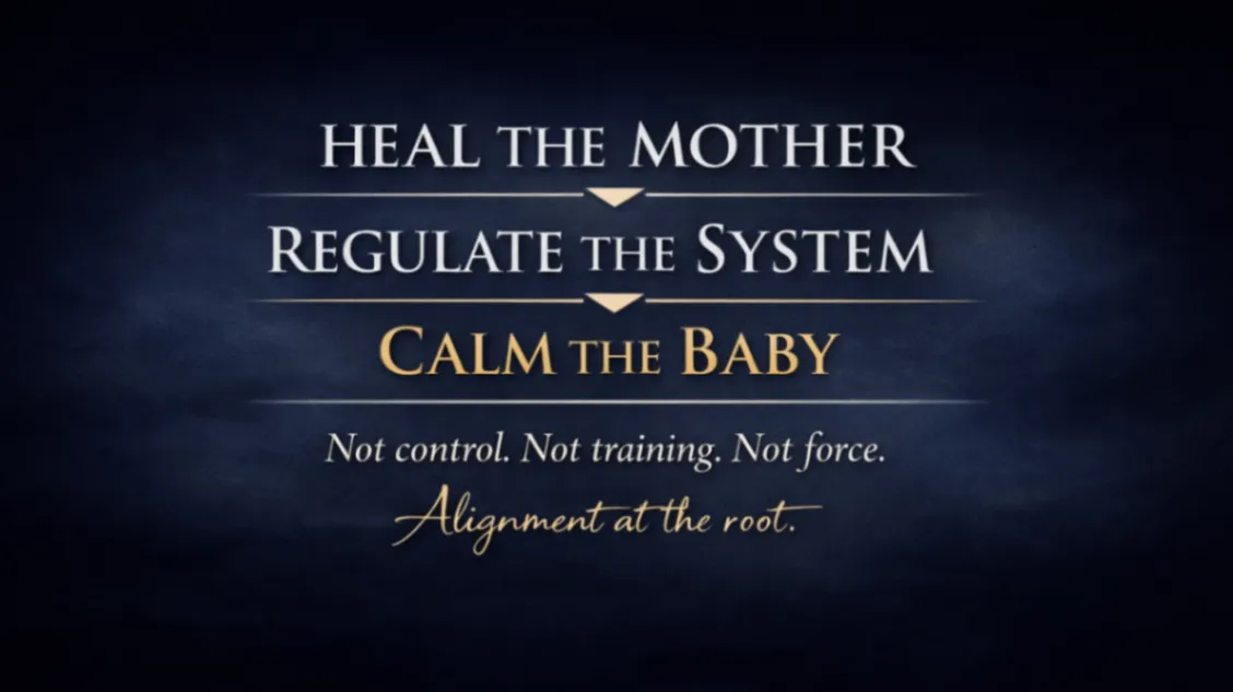 When nights feel tense instead of soft… Most people adjust routines. I work at the root. Because babies co-regulate through their mothers. If your body feels unsafe, hyper-alert, or burdened by subconscious beliefs, your baby’s nervous system responds accordingly.