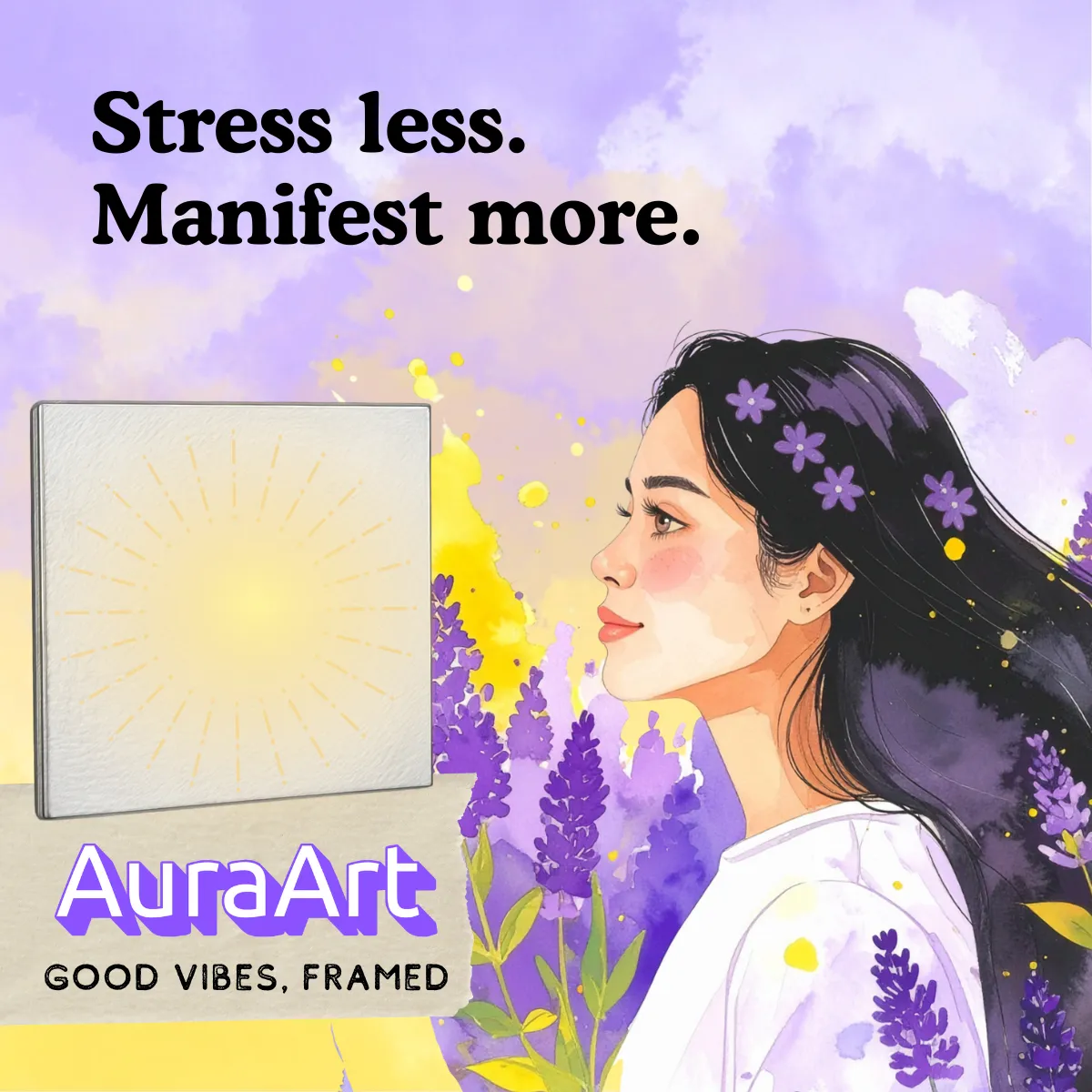 AuraArt is a Visual Vibe Reset — a daily lift for your mood and your mind. Each canvas is a pep talk in color and form — a reminder of who you’re becoming, not just what’s next on your to-do list. Lost in the daily rush and mundane routines? Try an AuraArt Canvas- A quick look, and boom: you’re back in the zone.