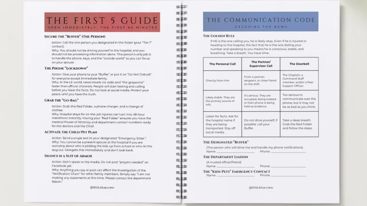 Most "Emergency Binders" are generic. This one is built specifically for the LEO life, covering the unique challenges of non-union departments, line-of-duty injuries, and the "unwritten" communication codes of the force.