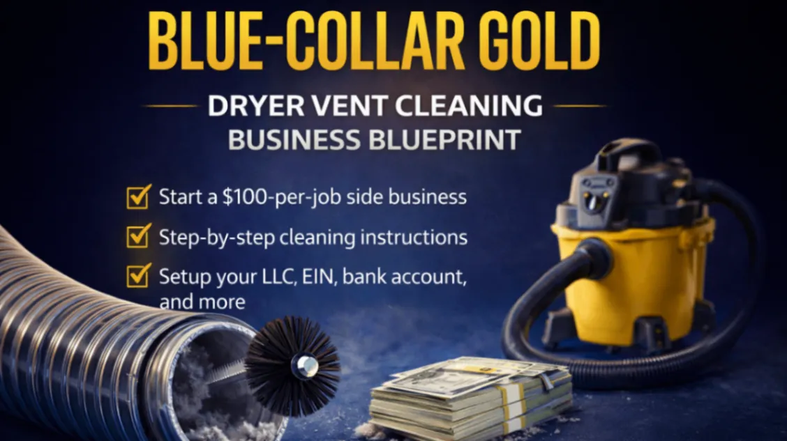 A step-by-step playbook showing how to start, run, and scale a dryer vent cleaning business. This guide covers pricing, tools, how to do the job correctly (including cleaning behind the dryer and fire-risk lint buildup), how to get customers, scripts for approaching homeowners, and how to turn this into a real registered business with an LLC, EIN, and business credit.