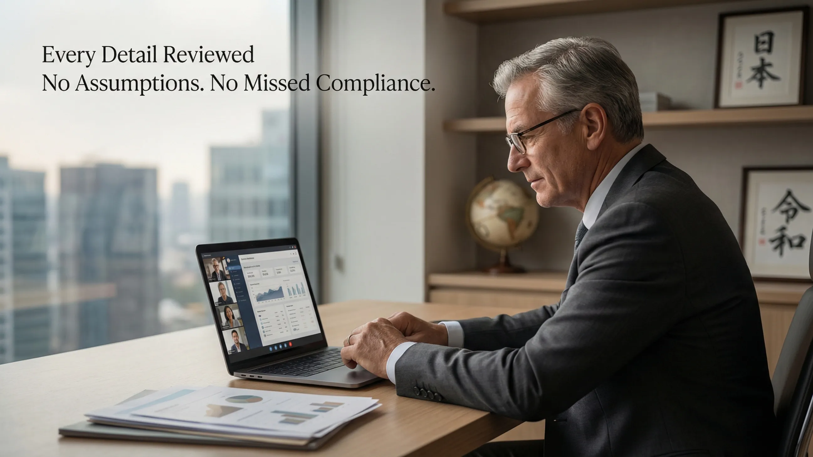 2. Document Review We analyze your bank accounts, investments, property holdings, and retirement funds across both countries.