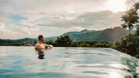 Chill time! Join us at this amazing resort a little outside the city with the most beautiful infinity pool around Chiang Mai, looking onto the lush mountains and majestic pagoda sticking out between the trees.