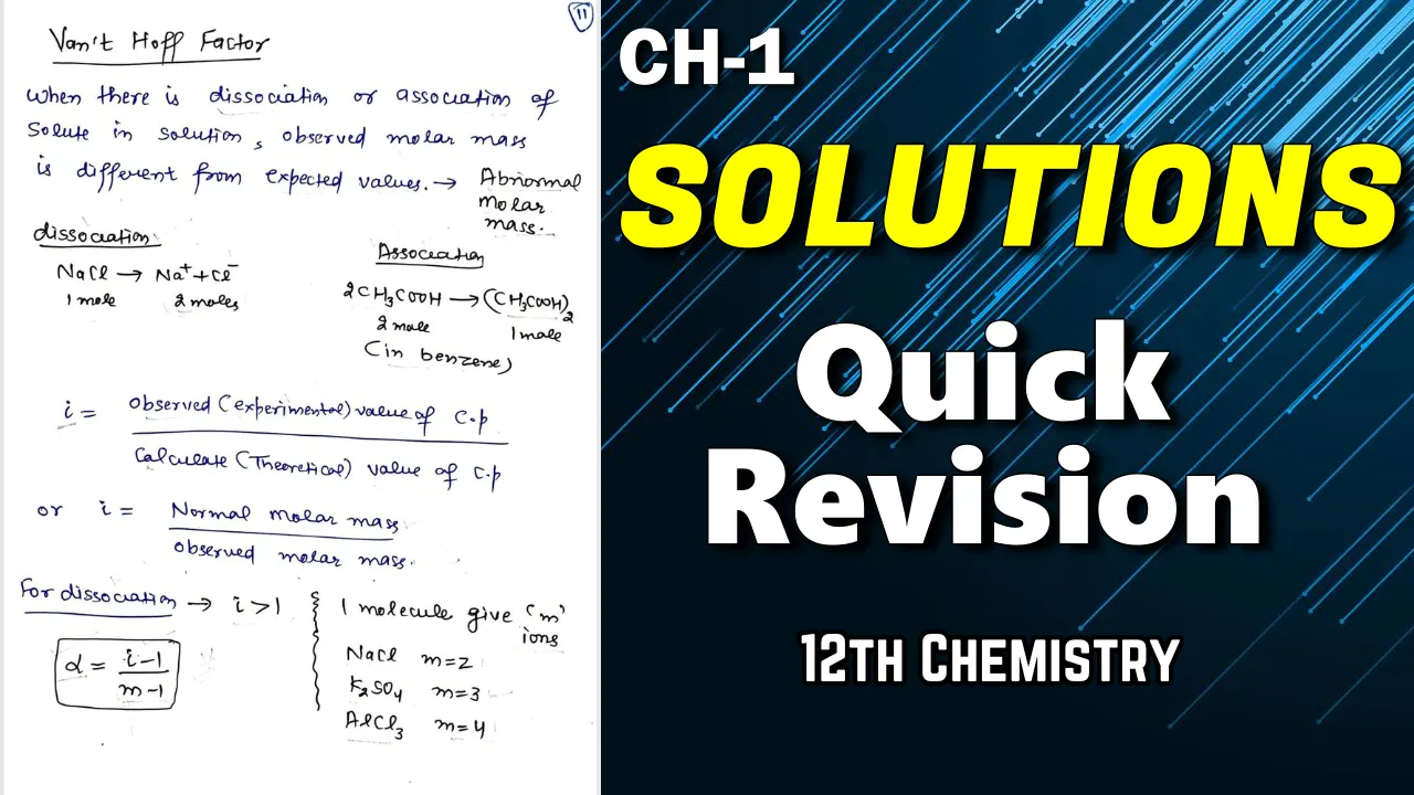 Ch 1 Solutions 12th Chemistry Quick Revision Notes