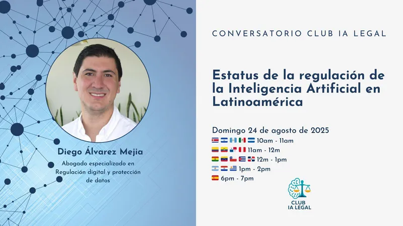 👉 Te invitamos al Conversatorio “Estatus de la regulación de la IA en Latinoamérica”, con Diego Álvarez Mejia, abogado especializado en regulación digital y protección de datos. 🧑⚖✨
