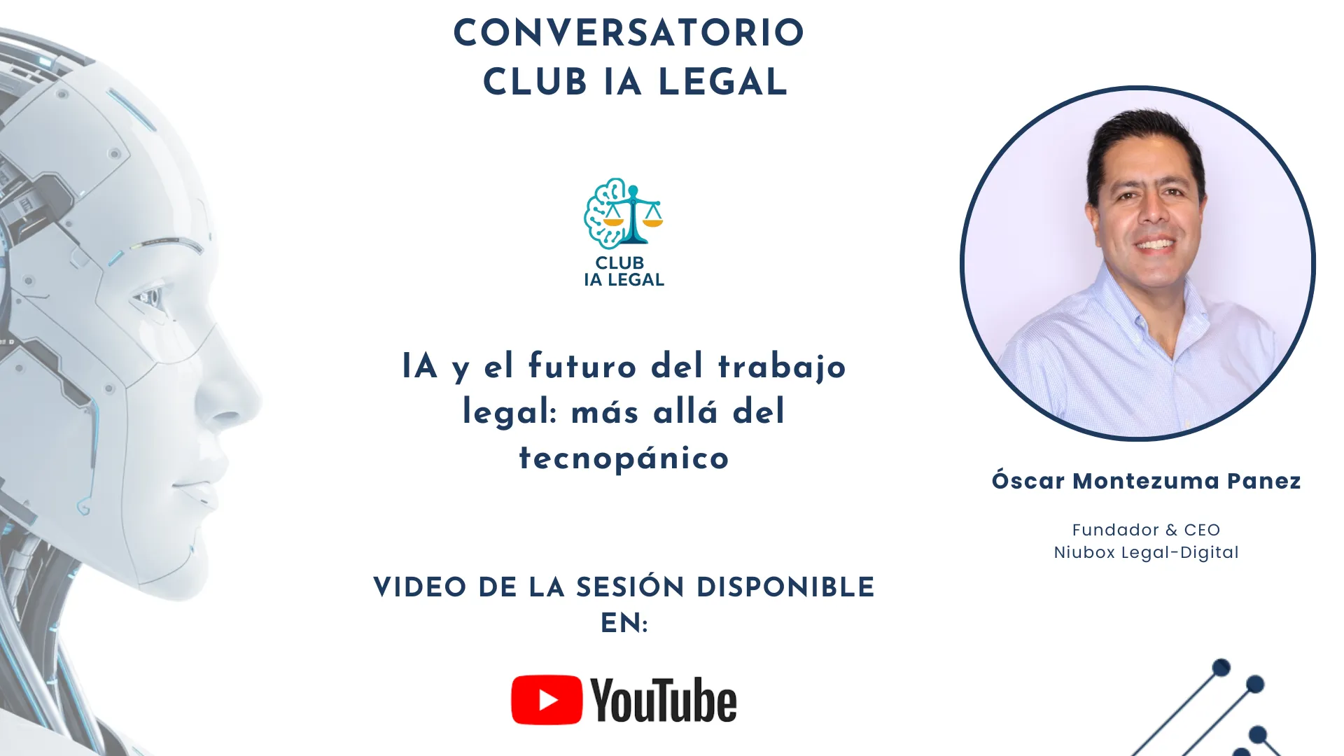 La conversación del pasado 9 de noviembre lo dejó claro: la inteligencia artificial ya no es un debate futurista, sino una herramienta estratégica cuyo valor depende menos de la tecnología y más de nuestra capacidad para integrarla con criterio, ética y propósito. El video completo de la sesión ya está disponible en nuestro canal de Youtube, no pierdas la oportunidad de formar parte del presente y futuro de la profesión legal ✨