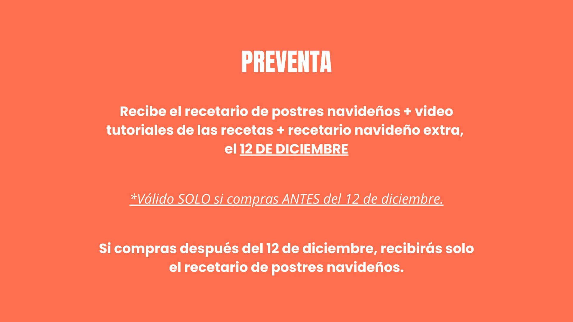 *Si compras después del 12 de diciembre solo recibirás el recetario de postres navideños (sin video tutoriales ni recetario navideño extra).