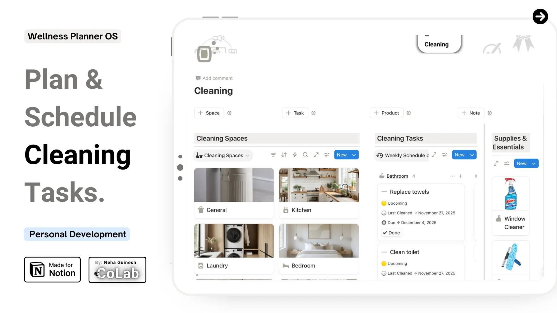 - ✅ Cleaning Tasks — organize and schedule each task by frequency and area