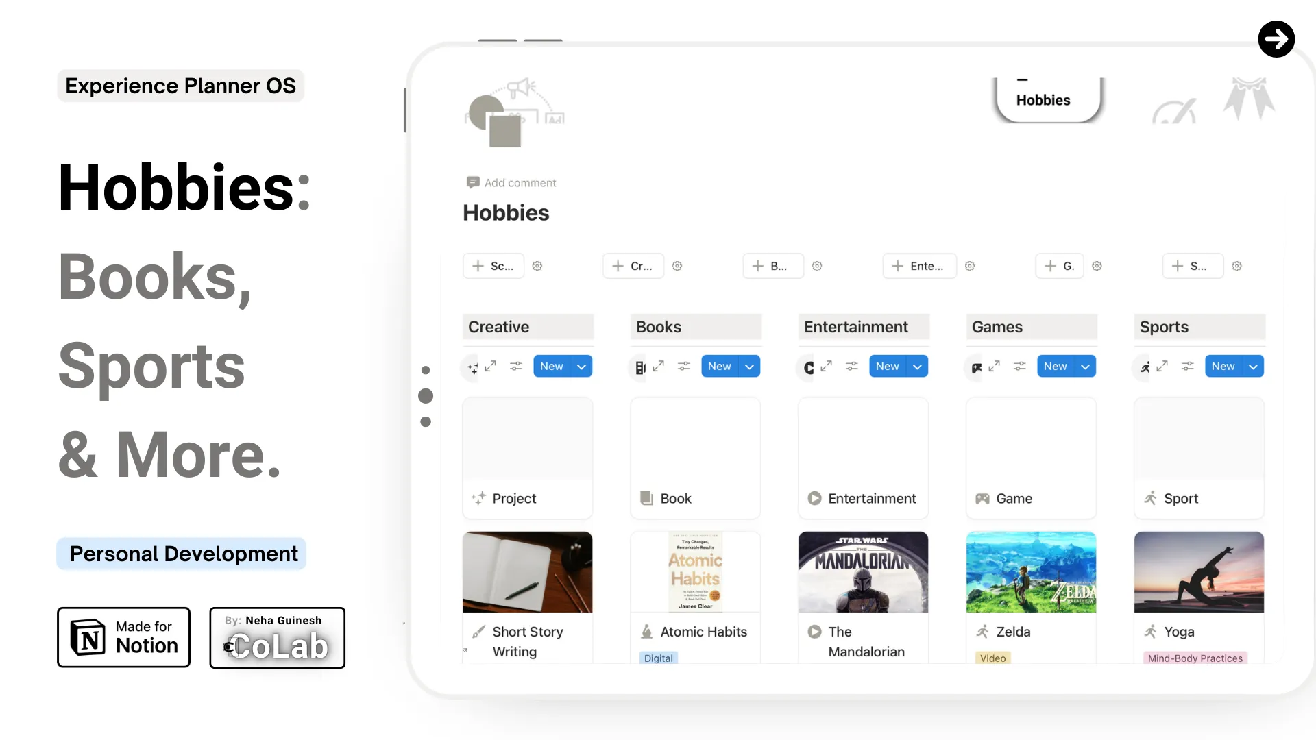 Life is full of passions — creative projects, reading, shows, games, sports, and leisure activities. Keeping track of them all can feel scattered, but with the Hobbies & Creative Experiences Planner, everything comes together in one organized, visual, and actionable dashboard.