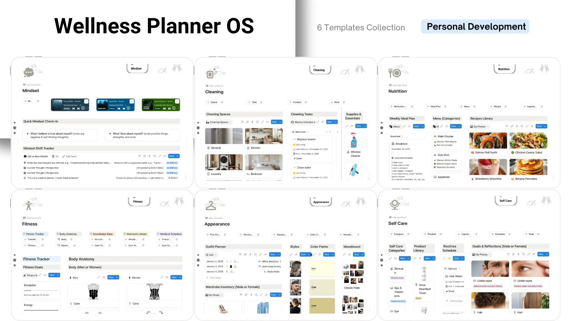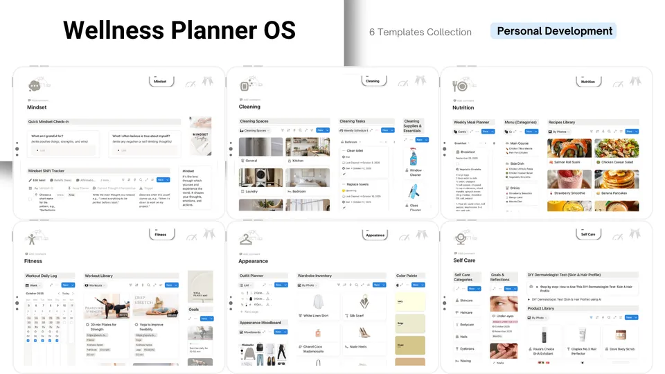 Imagine opening one clean dashboard and seeing your full wellness picture — mindset, nutrition, fitness, appearance, self care, and cleaning all working together in harmony. No more scattered notes, forgotten routines, or inconsistent habits. Instead, you feel grounded, intentional, and in control — because every aspect of your wellbeing is supported and easy to track.