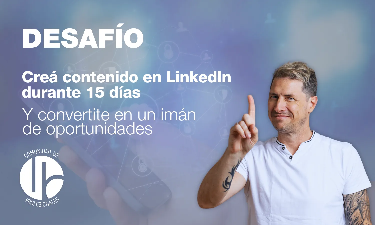 Durante 15 días, vas a aprender a crear publicaciones estratégicas que hackeen el algoritmo y multipliquen tus oportunidades. Este desafío está pensado para que cada contenido que publiques sea una puerta abierta a nuevas conexiones y negocios.
