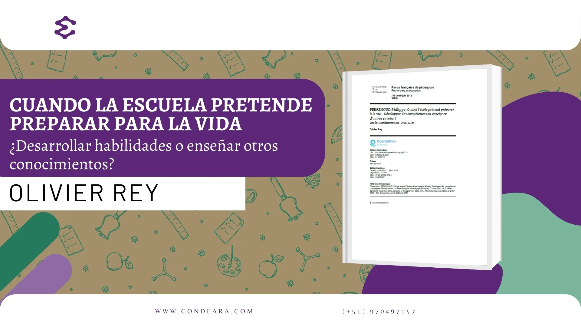 Olivier Rey, PERRENOUD Philippe. Quand l’école prétend préparer à la vie... Développer des compétences ou enseigner d’autres savoirs ? », Revue française de pédagogie [En ligne], 179 | avril-juin 2012, mis en ligne le 30 novembre 2012, consulté le 21 septembre 2020. URL : http://journals.openedition.org/rfp/ 3731 ; DOI : https://doi.org/10.4000/rfp.3731