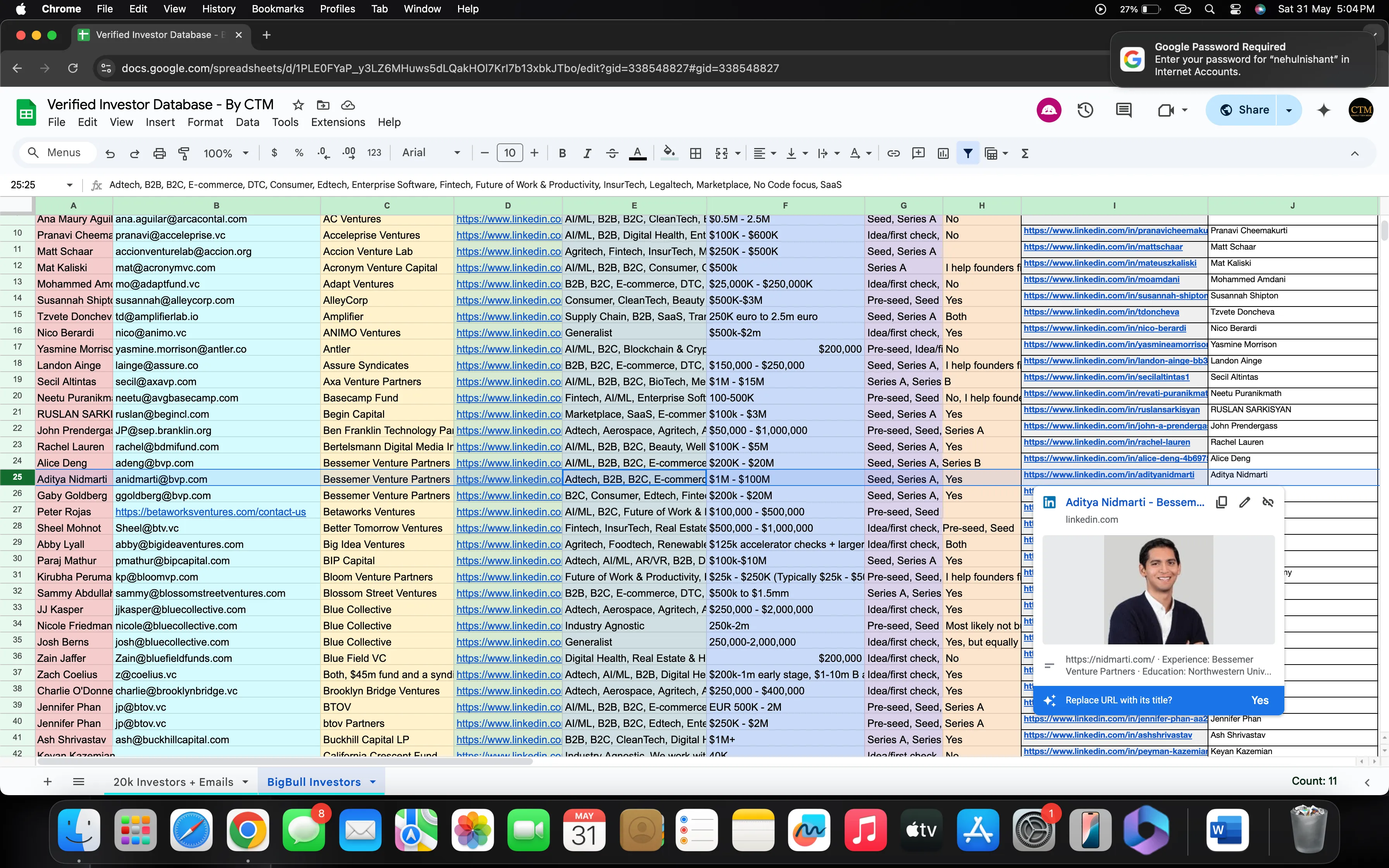 Name, Role, Email, LinkedIn, Sector, Stage, Location
