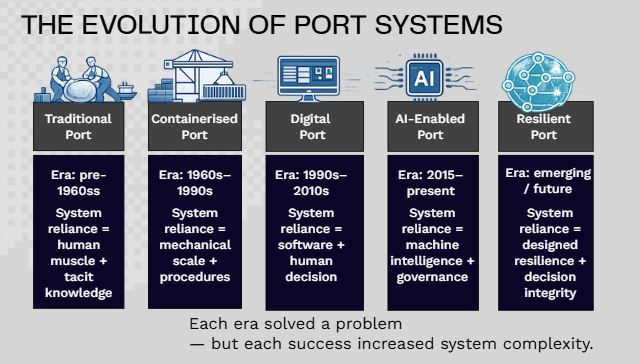 • The evolution from manual ports to AI-enabled — and finally resilient — port systems