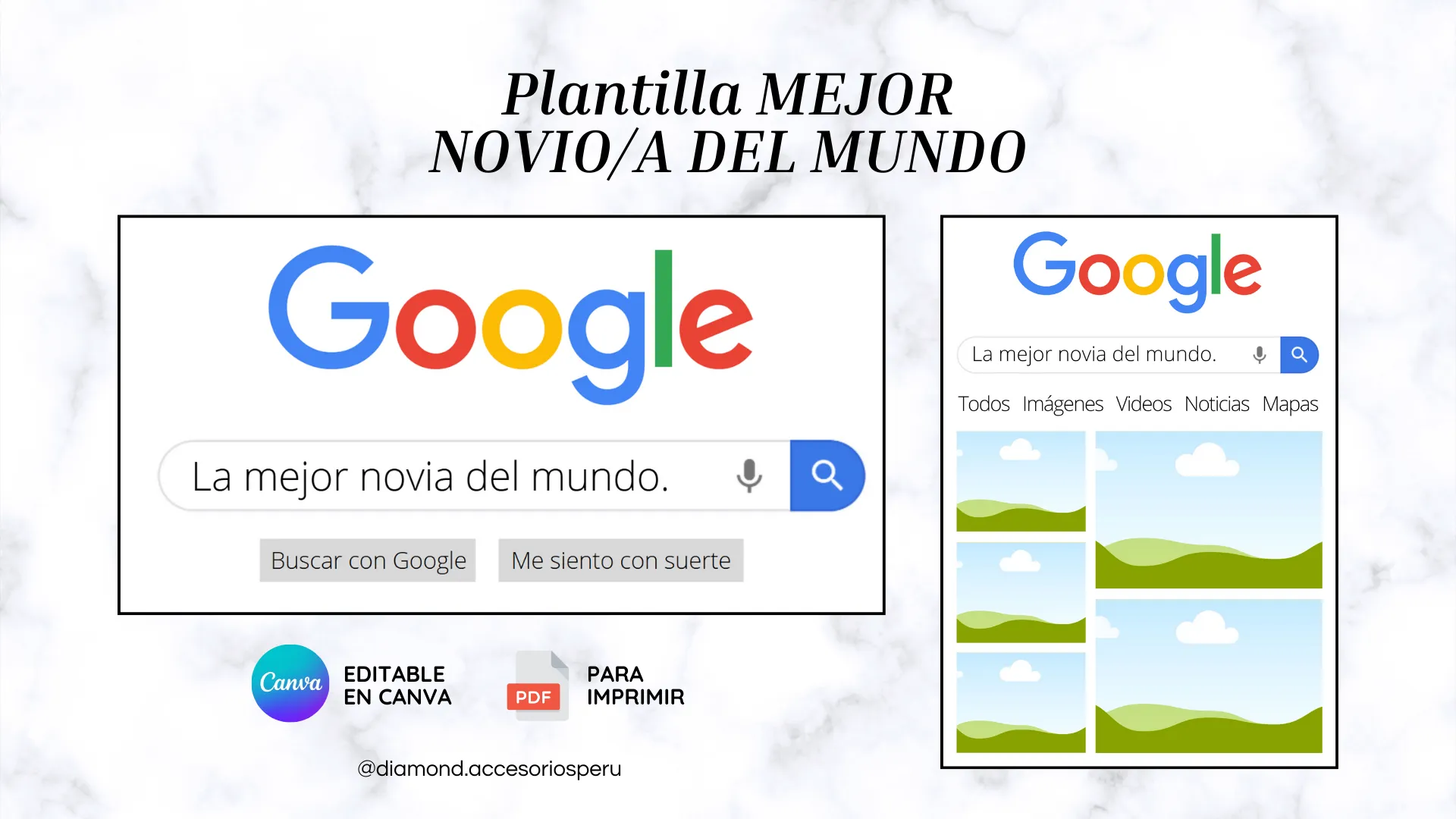 ✅ Diseño inspirado en la interfaz de Google con el mensaje: "La mejor novia/novio del mundo".