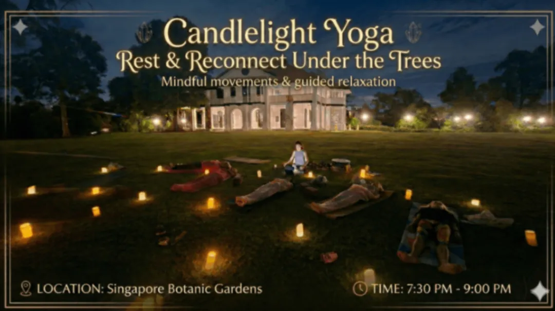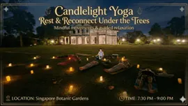 Unwind in nature at the Singapore Botanic Gardens with Pauline’s candlelight Hatha yoga session, followed either by a restorative sound healing journey led by a professional therapist or a guided relaxation led by Pauline.