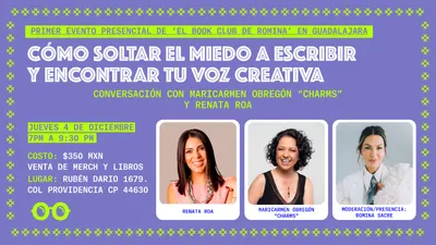 Por primera vez, 'El Book Club de Romina' llega a Guadalajara con un evento íntimo diseñado para desbloquear tu creatividad, reconectar contigo y animarte a escribir desde un lugar más auténtico y libre.