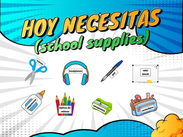 📌 TambiĂ©n incluye un header con la frase "Hoy necesitas" para que puedas mostrar los materiales del dĂa de forma clara y visible.