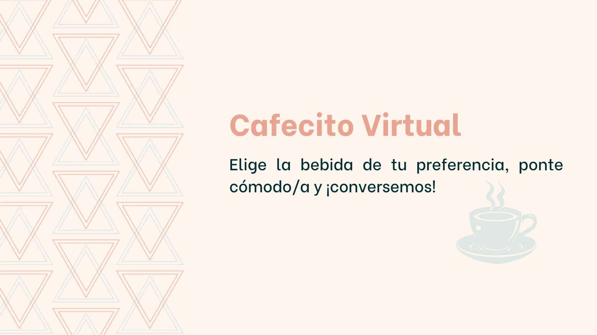 ☕ Elige la bebida de tu preferencia, ponte cómodo y ¡conversemos! ¿Necesitas claridad y/o una guía? Hablemos en una video llamada de 30 minutos sobre los temas que te interesan para transformarte. 🕦 Selecciona el horario en el que podemos coincidir ¡Será un gusto platicar contigo! Agenda aquí: https://calendly.com/elevare-consulting/cafecito-virtual Nos vemos pronto, Un abrazo ✨