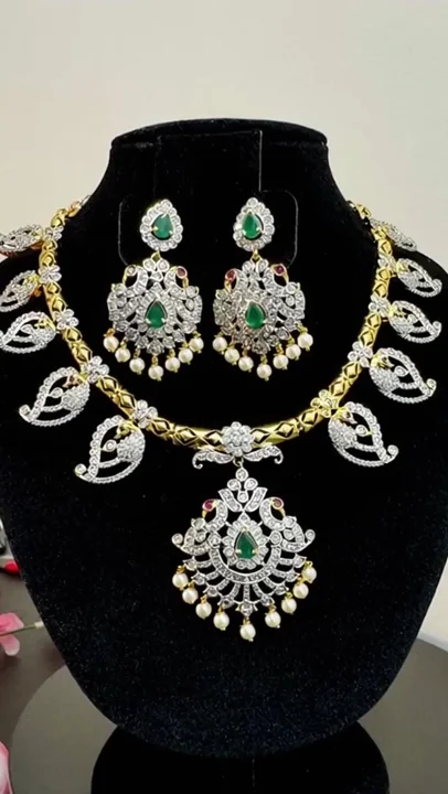 Evarya Peacock Sparkle Necklace Set
