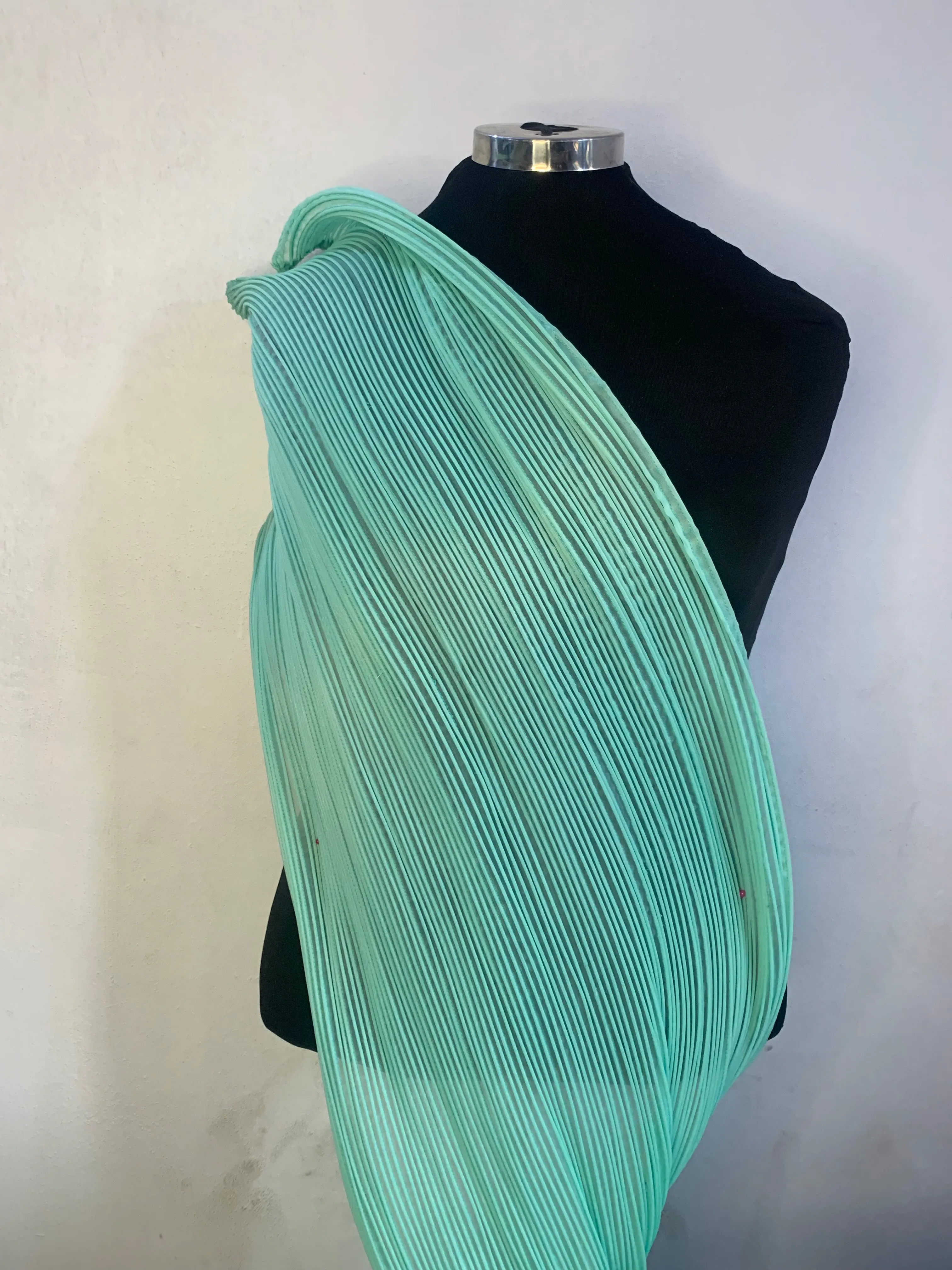 This spiral fabrics is 70 inches long and 25 inches wide and very flexible to make a gown or any type of dress you want. Note you need 2 to 3 of this to make a dress depending on body size