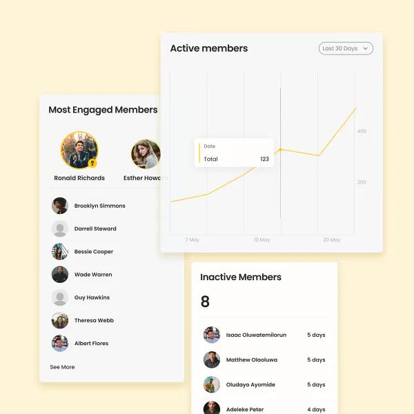 Spend more time doing what you love and less time on boring (but important) admin. Nas.io has a comprehensive but user-friendly dashboard that anyone can use. Monitor your chat engagement to determine your community health, and find a list of your least or most active members with just 1 click.