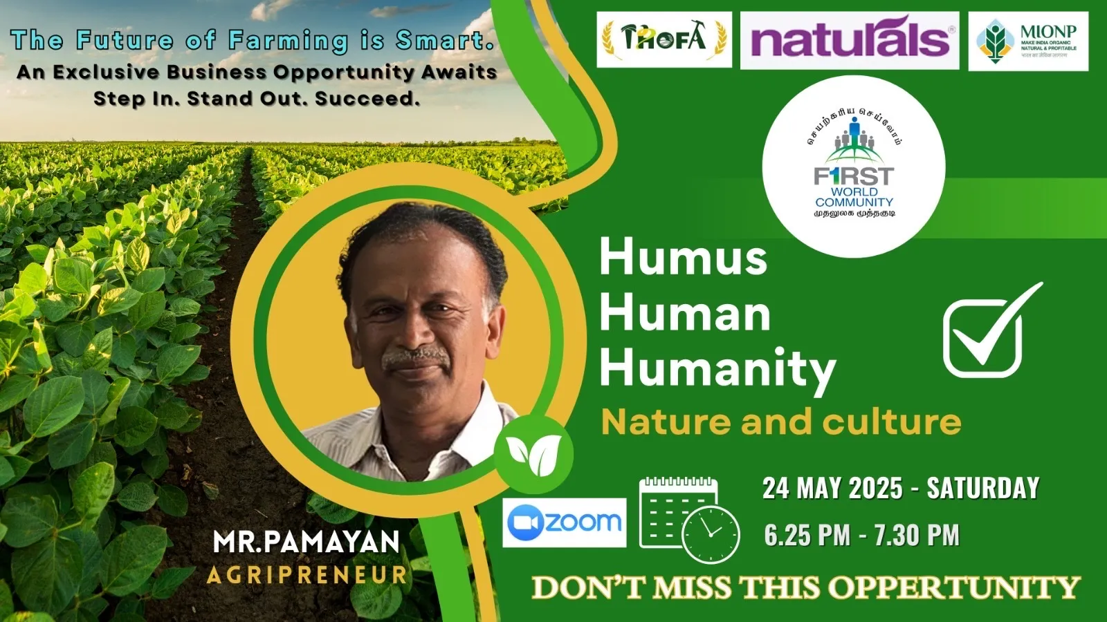 Join us for an enlightening session with Mr. Pamayan, a pioneer in organic farming and sustainable agriculture. With over 30 years of experience, he has empowered more than 15,000 farmers across India, promoting eco-friendly farming practices and rural development.