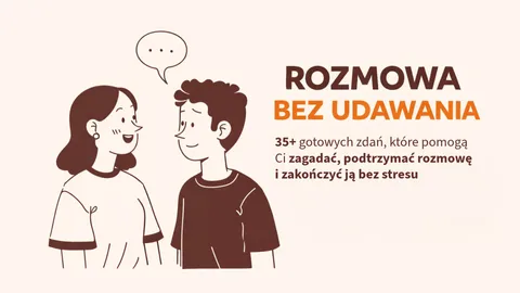 Dostajesz konkretne, naturalne zdania na start rozmowy, jej podtrzymanie i spokojne zakończenie — bez small talku, bez udawania pewności siebie, bez sztucznych/dziwnych tekstów.