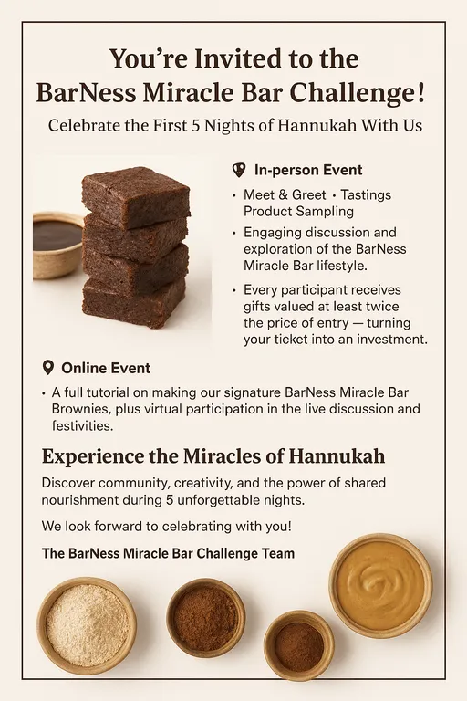 Celebrate the first five nights of Hannukah with a unique experience at Royal Oasis, Kiryat Motzkin, Israel, and online. Join us nightly for delicious tastings, live tutorials, and heartfelt community discussions that connect you to the spirit of the season. Whether in person or online, share creativity, joy, and the magic of Hannukah with us!
