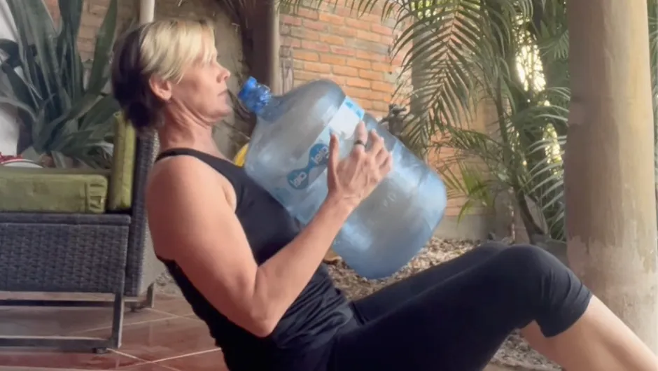 Don't have dumbbells? No problem. A standard 20L water jug is one of the most versatile pieces of "gym equipment" you can find while traveling. It allows you to maintain your strength and muscle mass without needing a fitness center.