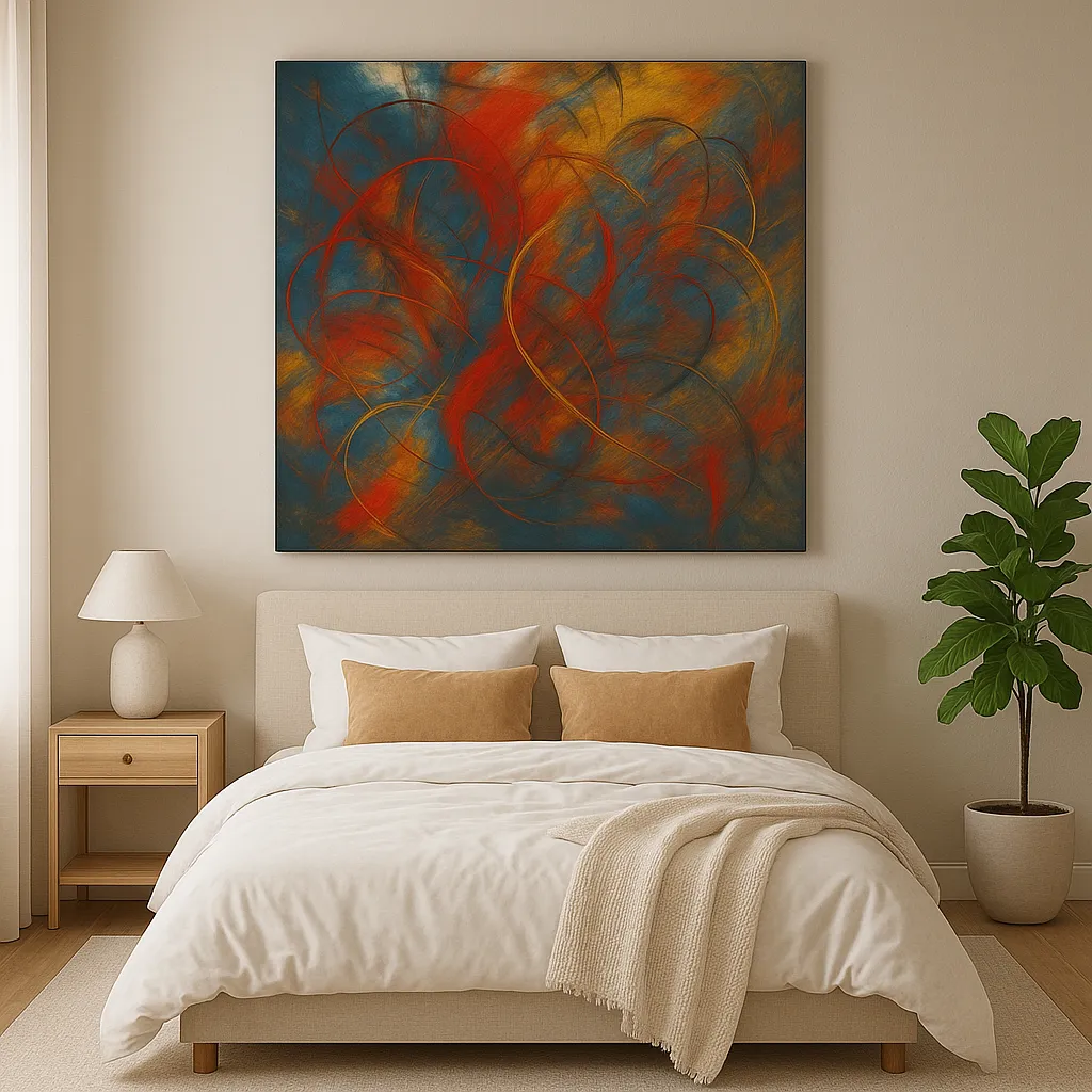 Energies in Motion is a powerful expression of movement, emotion, and color. Inspired by the Abstract Expressionist movement, this artwork explores the harmony hidden within chaos.