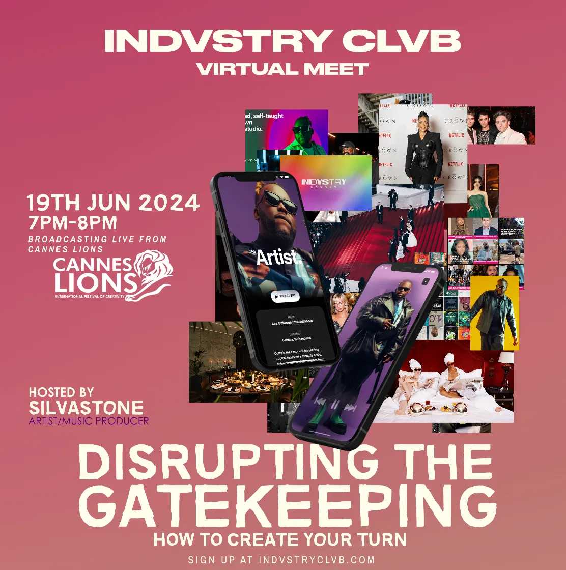 Hey Indvstry Clvb fam! 🎉 Ready to shake things up? Mark your calendars for an unmissable virtual hangout with the legendary artist, music producer, and serial entrepreneur, SILVASTONE, broadcasting live from the glitzy Cannes Lions Festival of Creativity! 🌟