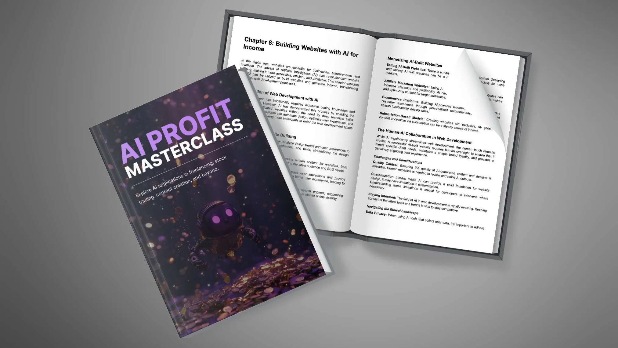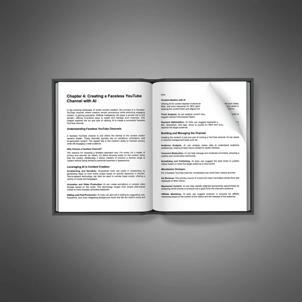 This ebook shows how AI can turn side hustles and online businesses into profitable income streams. It's packed with valuable knowledge on using AI in areas like content creation and stock trading.