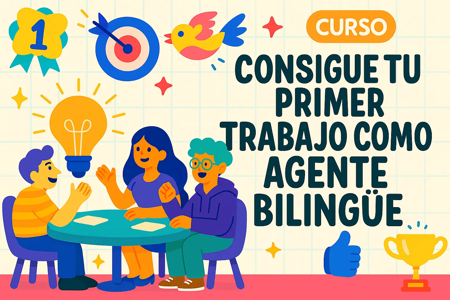 Con este curso vas a aprender todo el inglés que necesitas para conseguir tu primer trabajo como agente bilingüe, sin importar si estás empezando o si ya tienes algo de base. Está diseñado para darte claridad, estructura y confianza.