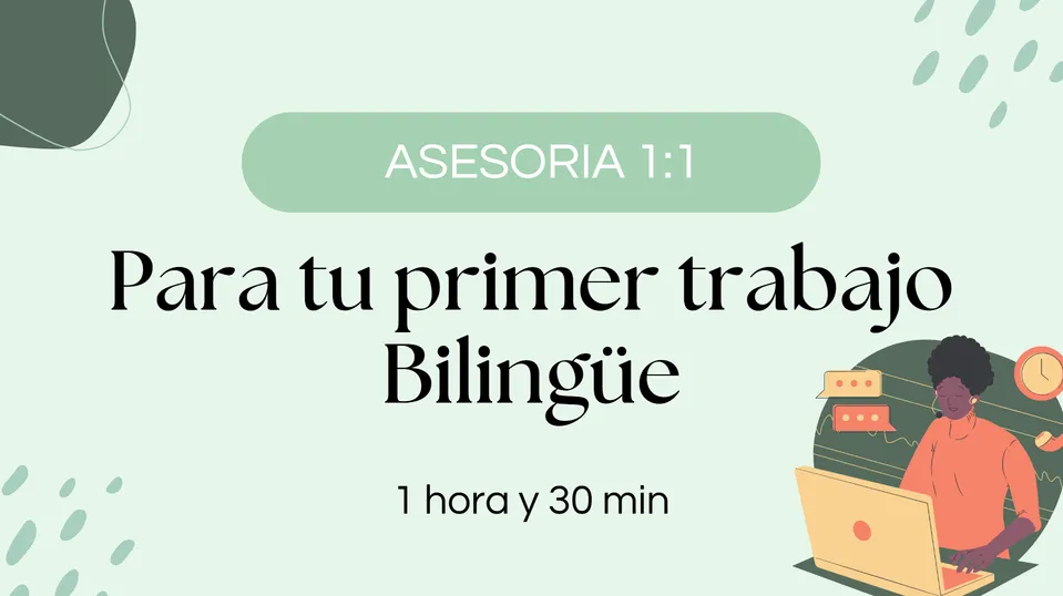 Por eso creé esta asesoría 1 a 1. En una sesión de una hora y media, estarás solo tú y yo. Haremos simulaciones reales de una llamada en inglés y de una entrevista de trabajo 🎙️. Además, te daré feedback personalizado sobre tu inglés y resolveré todas las dudas que tengas sobre cómo conseguir tu primer empleo bilingüe.