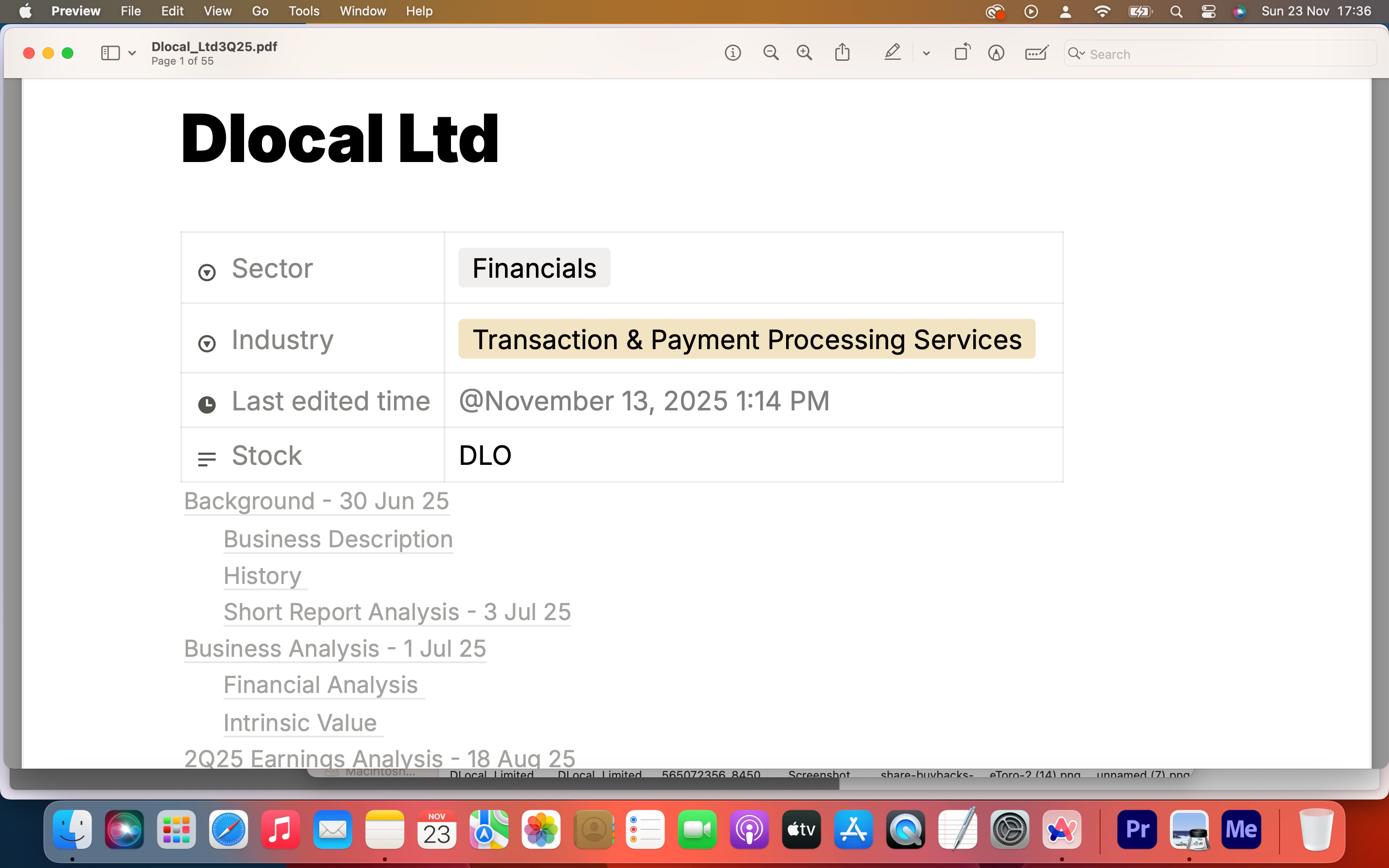 Each report includes my notes, insights, valuation work, and the sources I rely on while researching a company.