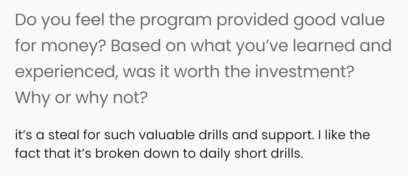 This program is designed intentionally to get you results, but it will vary for individuals depending on personal factors including their starting point and consistency.