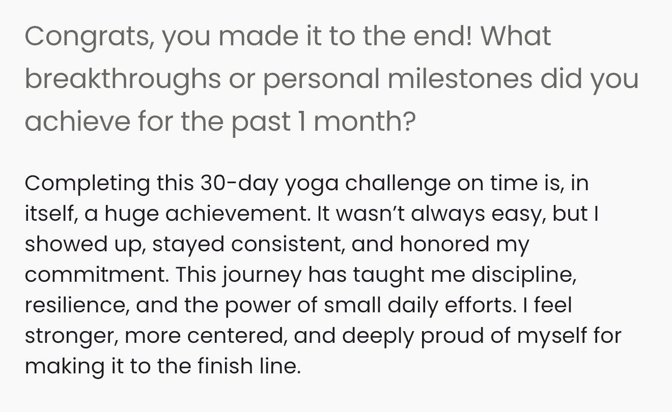 My mission here is to create a clear path to your success. Through these challenges, I want to guide you to feel strong, empowered, and capable of achieving your goals - both on and off the mat.
