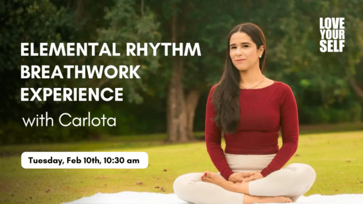 Join Carlota Perez-Appelbaum for a 90-minute guided journey designed to help you release stress, reconnect with yourself, and access deeper states of clarity and healing. The Elemental Rhythm Breathwork Experience weaves together gentle movement, rhythmic breathing patterns set to music, and a guided meditation with rotating themes (such as healing the past, empowering the present, or gaining clarity for the future self). Each session closes with integration and optional sharing in a supportive circle. This practice can be deeply transformative, offering new insights each time.