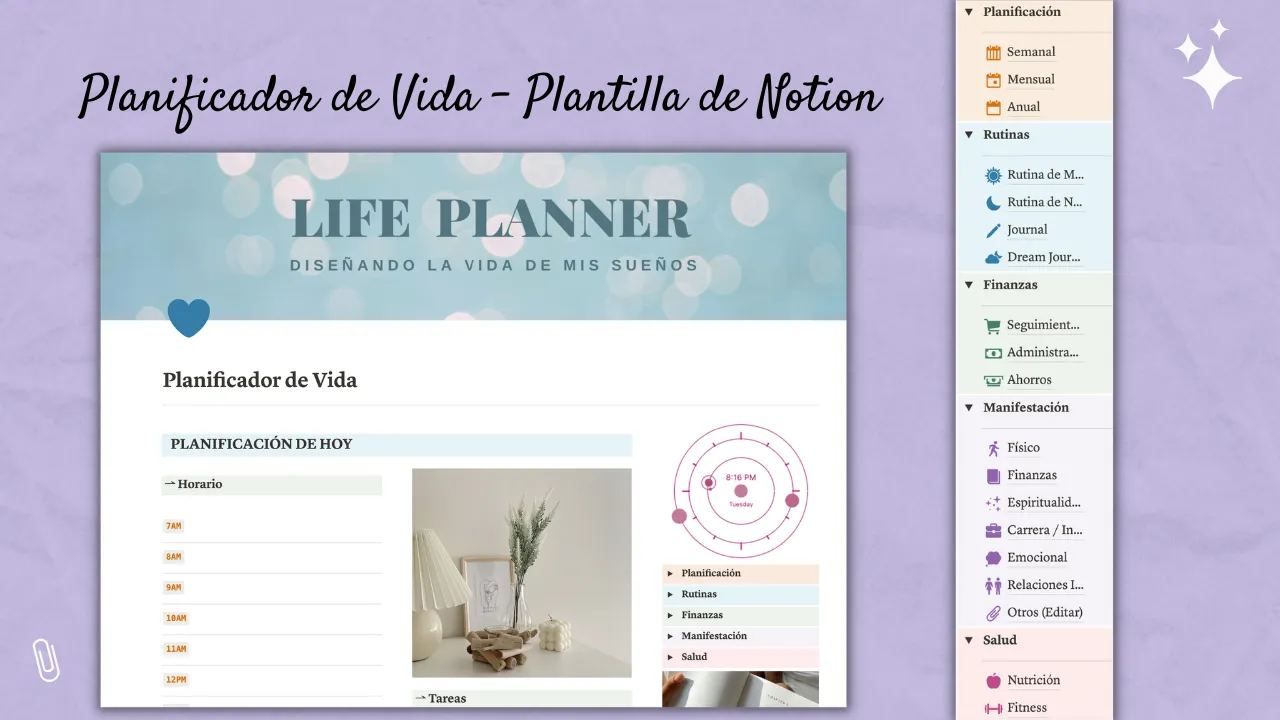 El Planificador de Vida (Notion Template) es un planificador digital Aesthetic todo en uno que tiene todas las herramientas que necesitas para organizar tu vida en un solo lugar 💌