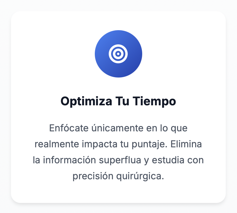 Pasarás de estudiar desordenadamente a implementar un plan estratégico basado en simulacros reales. Desarrollarás técnicas avanzadas de gestión del tiempo, control de ansiedad y toma de decisiones bajo presión. Recibirás retroalimentación detallada para ajustar continuamente tu preparación.